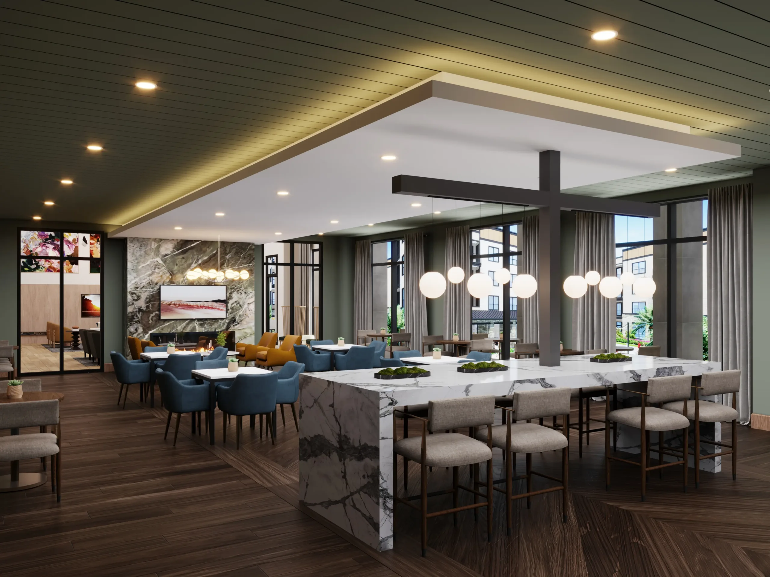 • Relax and connect with neighbors in a serene, beautifully designed environment.