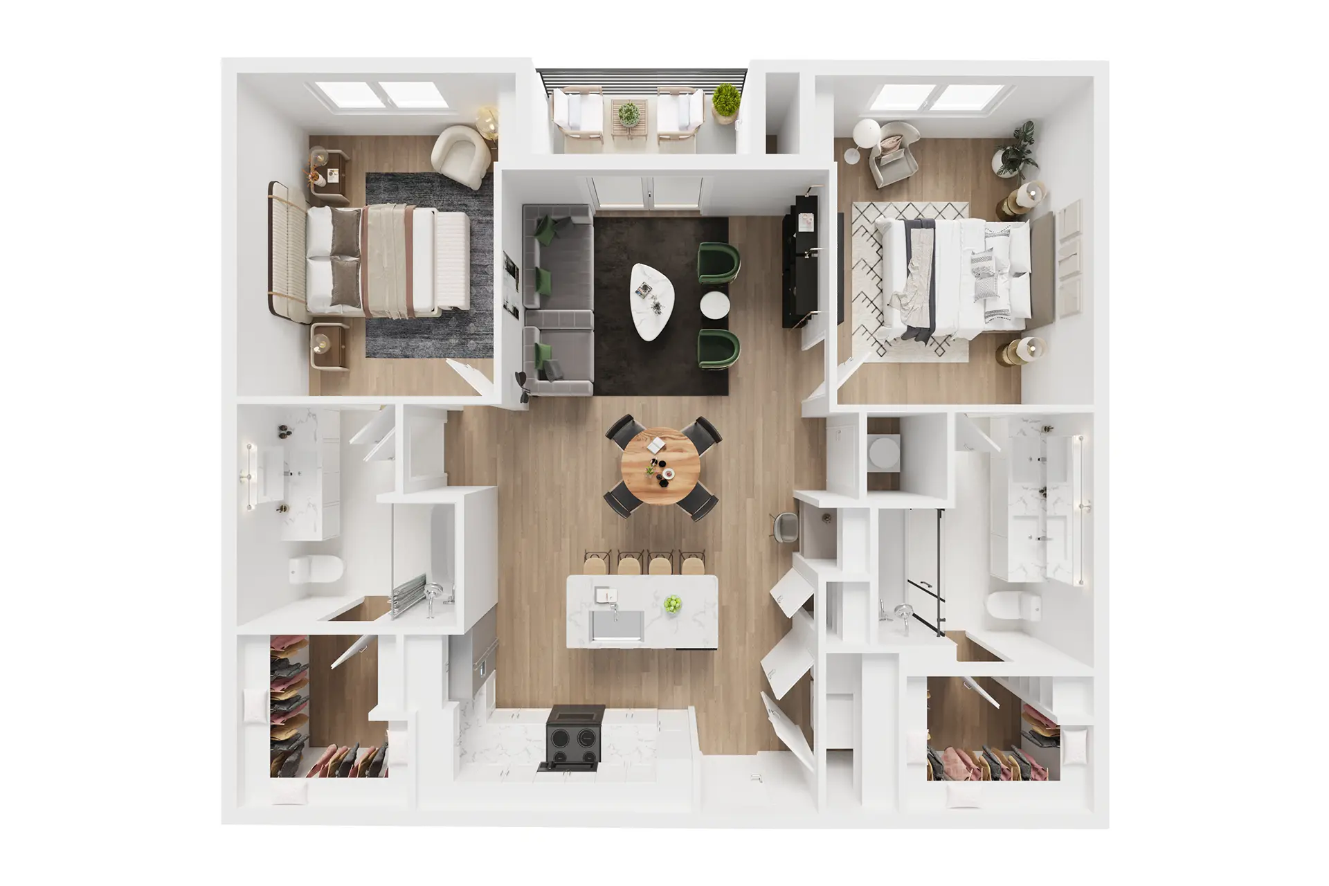 Wake up to the calming sounds of nature and take in the fresh air on our wooded walking trails. Enjoy peaceful mornings on your private patio, or unwind in serene outdoor lounges nestled beneath the trees.